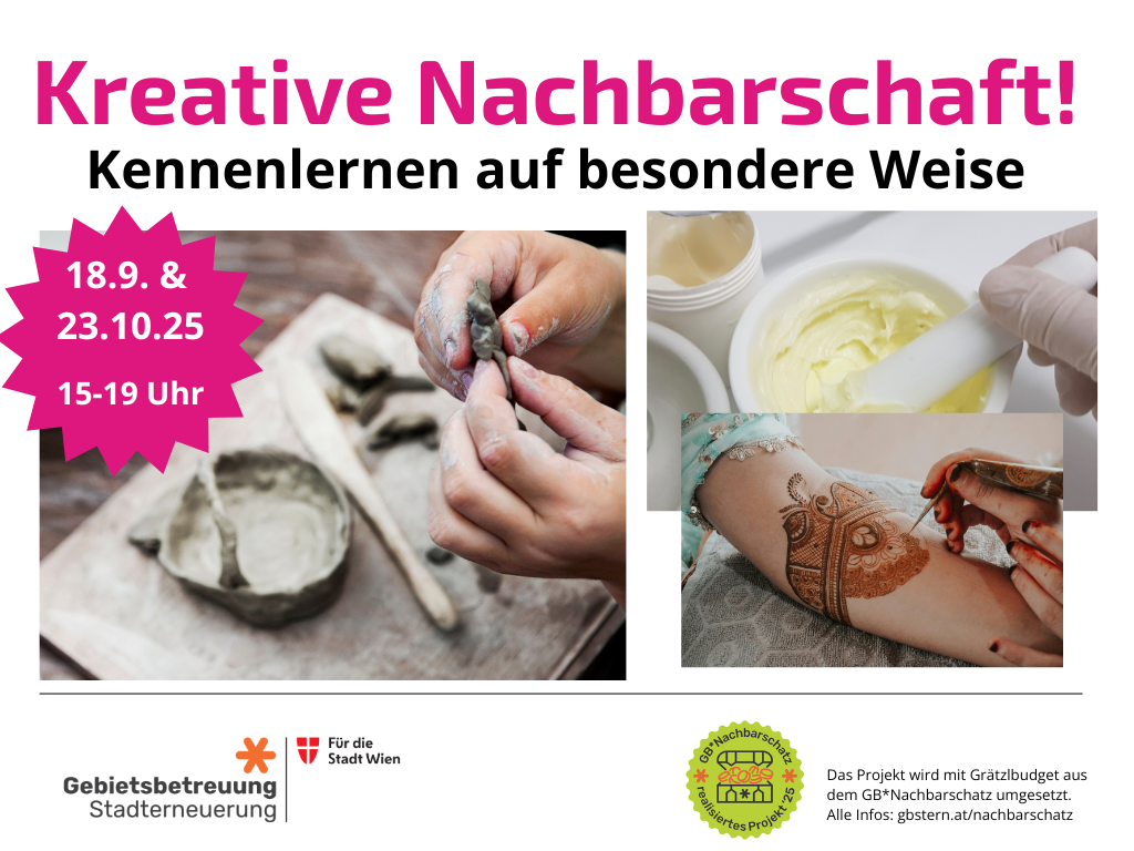 Komm vorbei und erlebe Nachmittage voller Begegnungen. Gemeinsam kreativ sein beim Töpfern, Salben herstellen, Henna malen und mehr spannenden Aktivitäten.